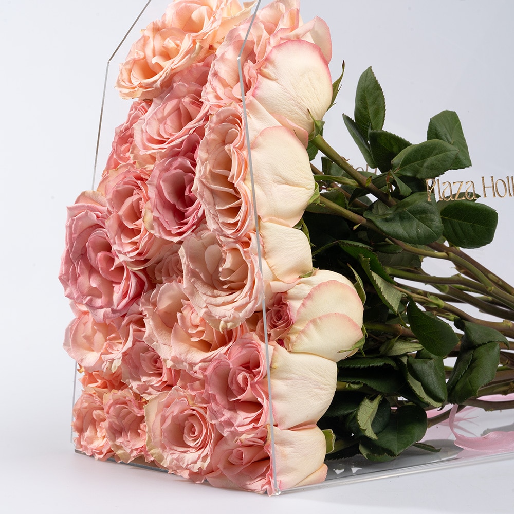 This stunning arrangement features 25 exquisite pink roses elegantly displayed in an acrylic box. The vibrant pink roses symbolize love and admiration, creating a beautiful focal point. The transparent acrylic box enhances the visual appeal while providing a modern and stylish touch, allowing the roses to shine. Perfect for special occasions, such as anniversaries, birthdays, or as a heartfelt gift, this arrangement is a delightful way to convey your sentiments. Its combination of elegance and charm makes it a memorable centerpiece for any setting.
