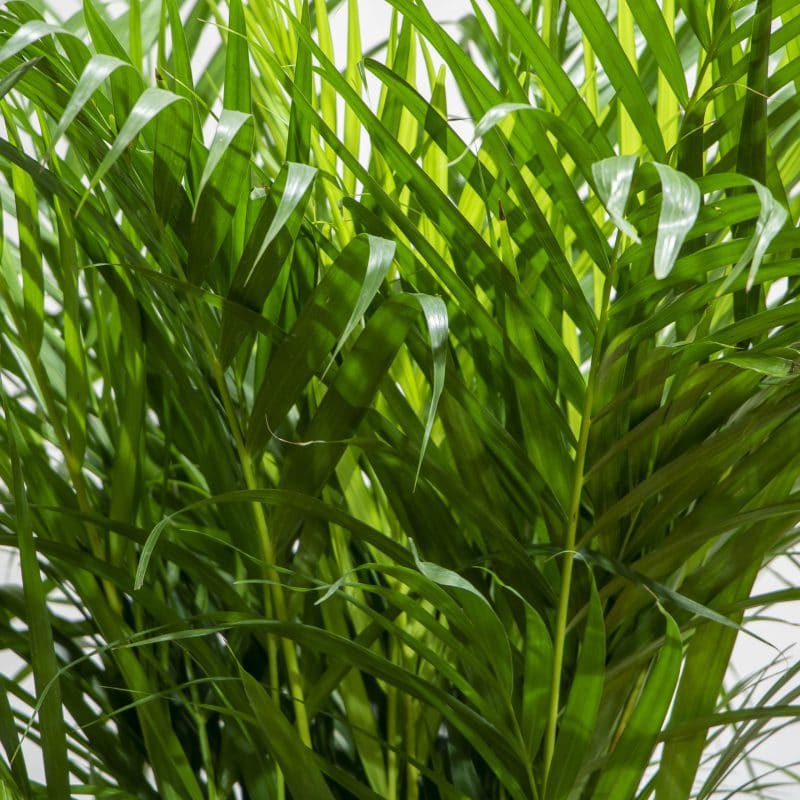 Areca Palm, a perfect air purifier for your home planted in a grey pot.