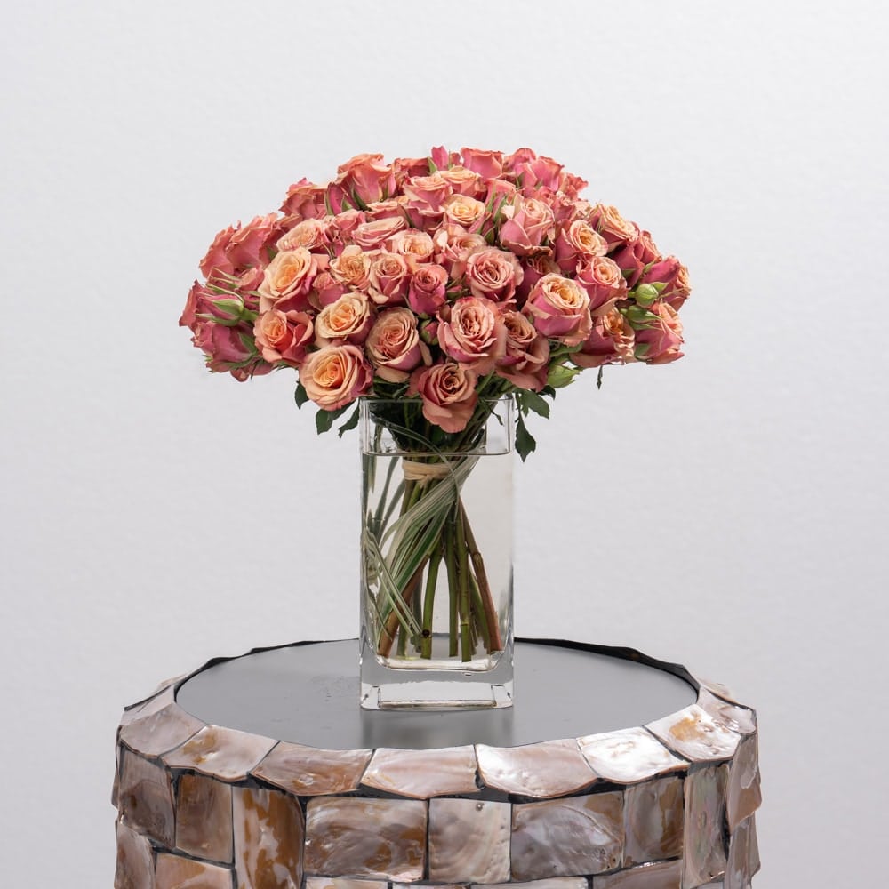 Delicate Pink Spray Roses Display in Glass Vase (26 cm) by Plaza Hollandi UAE offers a luxurious and serene floral experience in Abu Dhabi. Designed for balance, charm, and sophistication, it is ideal for premium flower gifts, elegant flower arrangements, or online floral delivery.