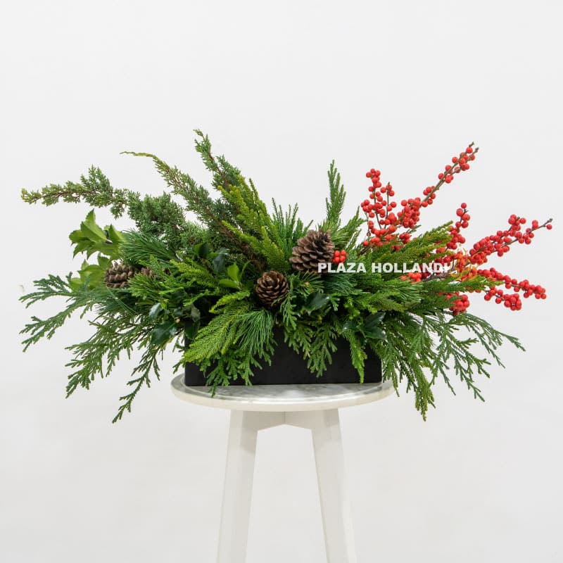 Festive Box Arrangement brings sophisticated holiday elegance to any setting. To experience this arrangement or explore additional curated floral gifts, visit our locations and discover Plaza Hollandi UAE in Abu Dhabi.