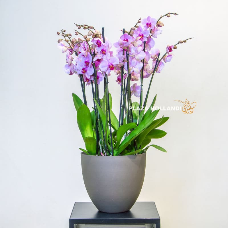 Five stunning pink phalaenopsis orchids planted in a grey pot. Easy to look after and a plant that will give you so much joy, these white orchids are the perfect gift to send to your loved ones or to keep for your home, office or workspace. For more information on how to look after the orchid have a look at our blog about orchid plants.