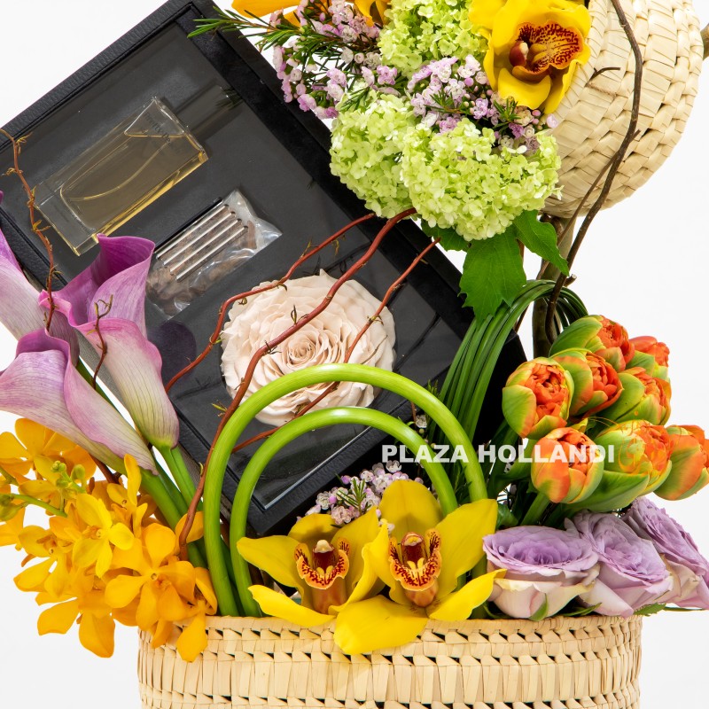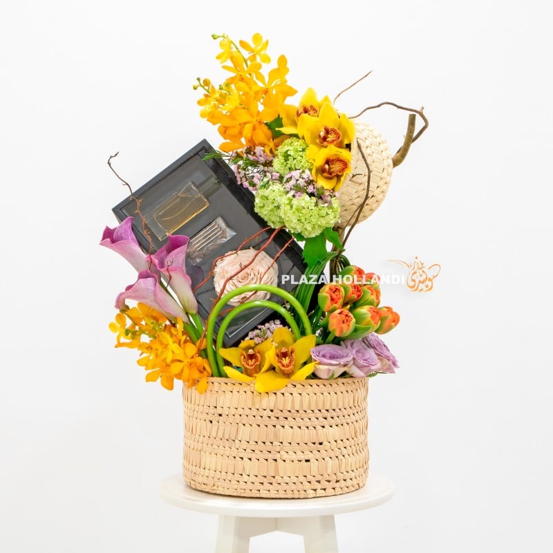 A beautiful gift basket design, perfect for Eid, a birthday, Mother’s Day, or just to show someone how much you care. A gift box of our Pretty Peach Perfume, coupled with OUD Amber and a long-lasting cream rose. A really special long-lasting gift to send to your loved ones.