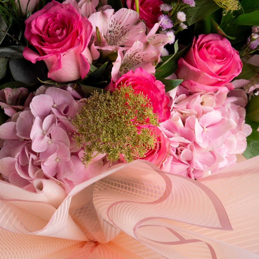 Hydrangea & Rose Delight is particularly suited for Love and Romance, offering a lush and elegant expression of sentiment. It also complements anniversaries, intimate celebrations, or as a thoughtful gesture for special moments.