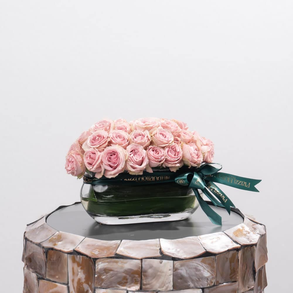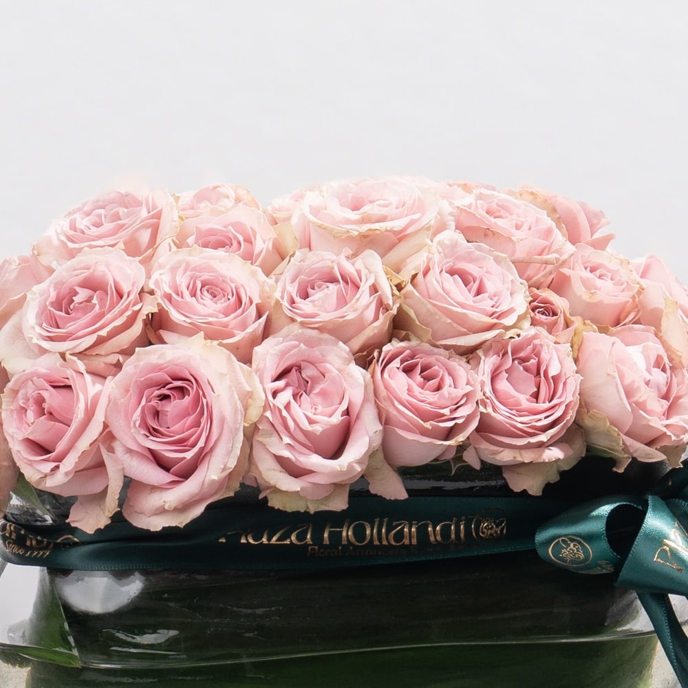 Light Purple Spray Roses in a rectangular glass bowl vase (22 x 10 x 10 cm) brings elegance, refinement, and timeless beauty to every occasion. To explore this arrangement or discover other curated bouquets, visit our locations and experience the sophistication of Plaza Hollandi UAE in Abu Dhabi.