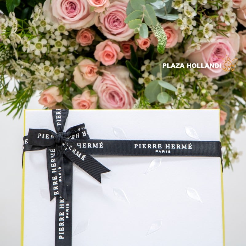 This combined gift of fresh flowers together with delicious sweet treats from Pierre Hermé are only available online at Plaza Hollandi. Voted ‘Best Pastry Chef in the World’ in 2016 and nominated the 4th most influential French personality in the world in the same year by Vanity Fair magazine, Pierre Hermé creates his own tastes and flavour combinations, just like an artist. A gift that will be remembered as a thoughtful idea to give as well as to receive.   A beautiful flower and chocolate combination.