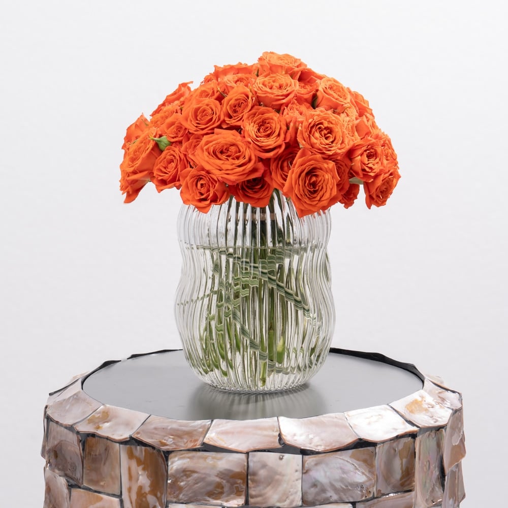 Orange Spray Roses in Glass Vase – 23 cm by Plaza Hollandi UAE offers a vibrant and luxurious floral experience in Abu Dhabi. Expertly arranged for brightness, charm, and sophistication, it is perfect for premium flower gifts, refined flower arrangements, or online floral delivery.