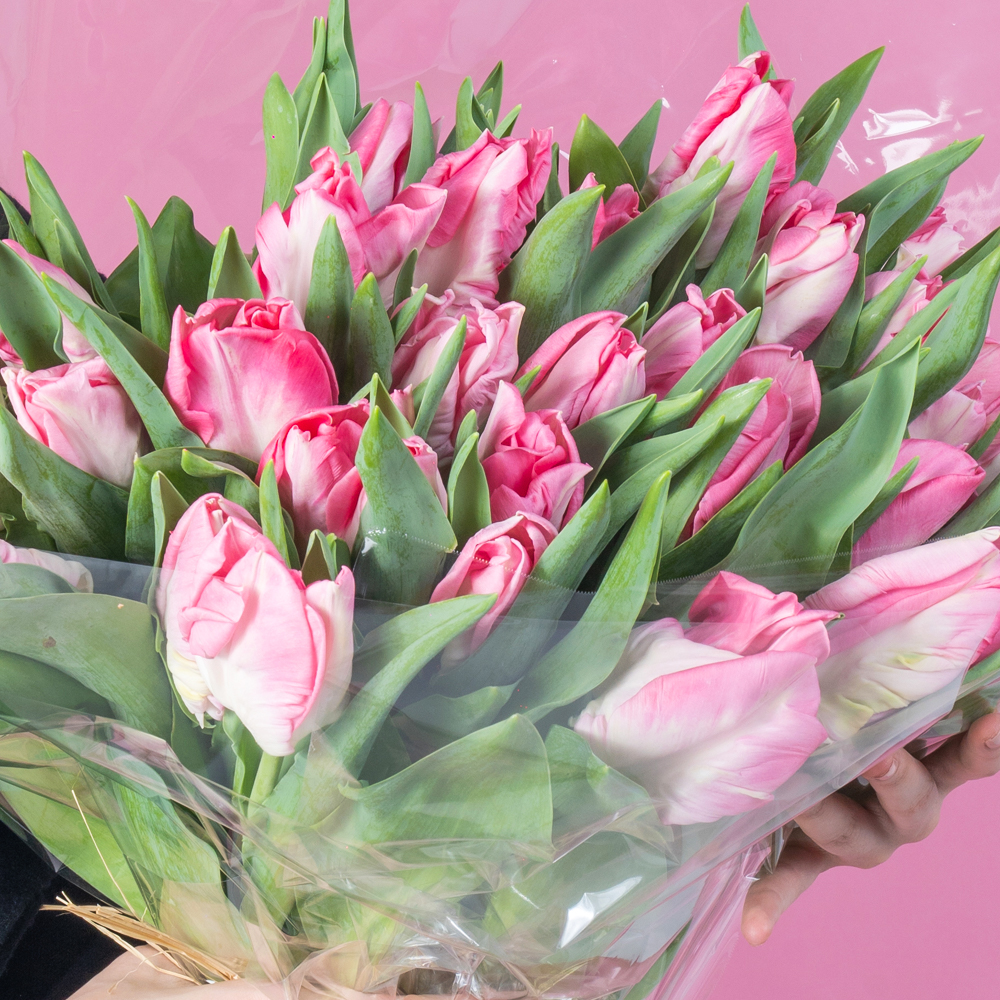 • Fresh pink Tulip blooms selected for uniformity and vibrancy