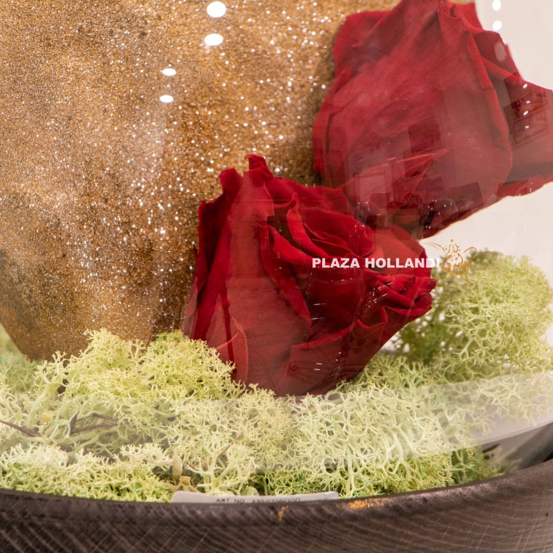The Preserved Rose in a Glass Dome by Plaza Hollandi UAE is a luxury floral masterpiece designed to symbolize everlasting beauty and refined emotional expression. Created for discerning flower buyers in Abu Dhabi, this elegant display features a real preserved rose carefully enclosed within a sophisticated glass dome, offering long-lasting floral charm without the need for daily maintenance.