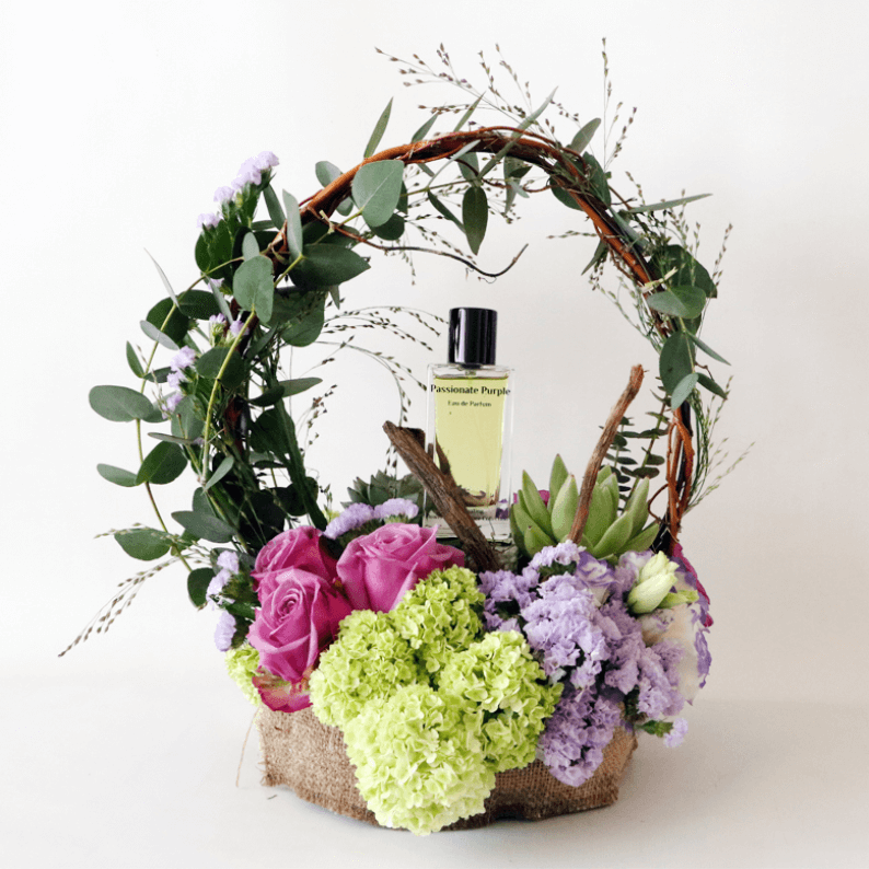 Passionate Purple perfume with flowers.