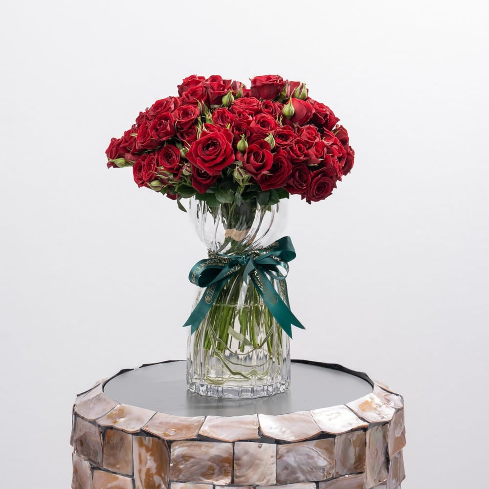 Red Spray Roses in Glass Vase – 23 cm by Plaza Hollandi UAE offers a refined and passionate floral experience in Abu Dhabi. Expertly arranged for charm, color, and sophistication, it is ideal for premium flower gifts, elegant flower arrangements, or online floral delivery.