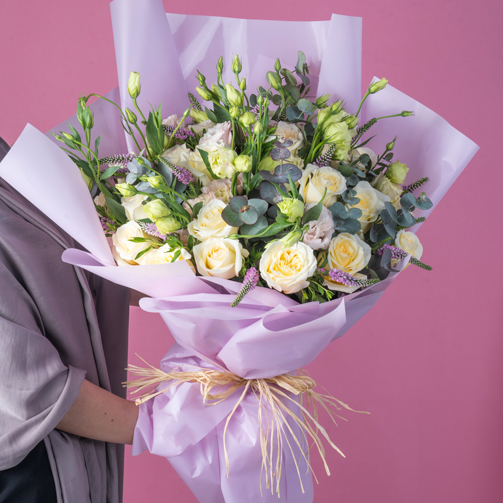 Rose Eustoma Sunset Serenade is a luxurious floral arrangement that blends the classic elegance of roses with the soft, flowing charm of eustoma. Designed by Plaza Hollandi UAE in Abu Dhabi, this composition evokes the warm, harmonious tones of a sunset, creating a refined and memorable floral display perfect for gifting or elevating interior décor.