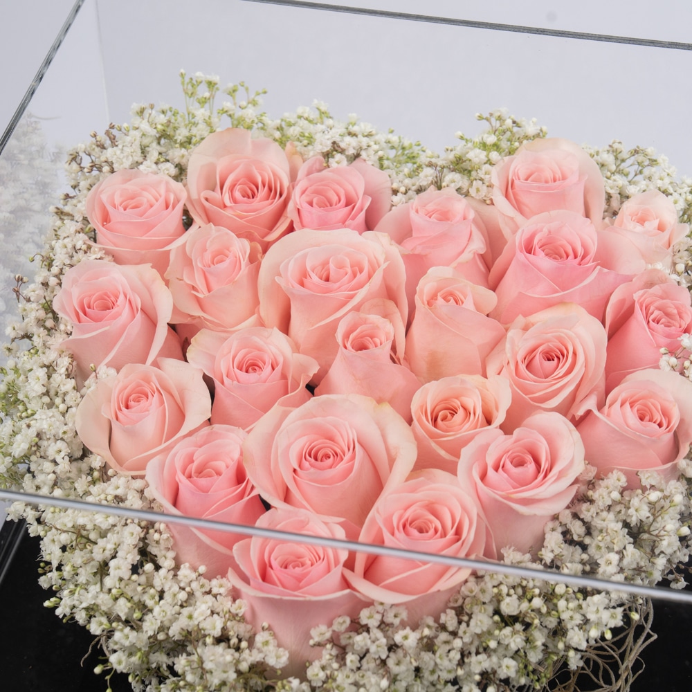 Gypsophila & Pink Rose Arrangement with Plaza Hollandi Premium Chocolate – 30x30x17 cm