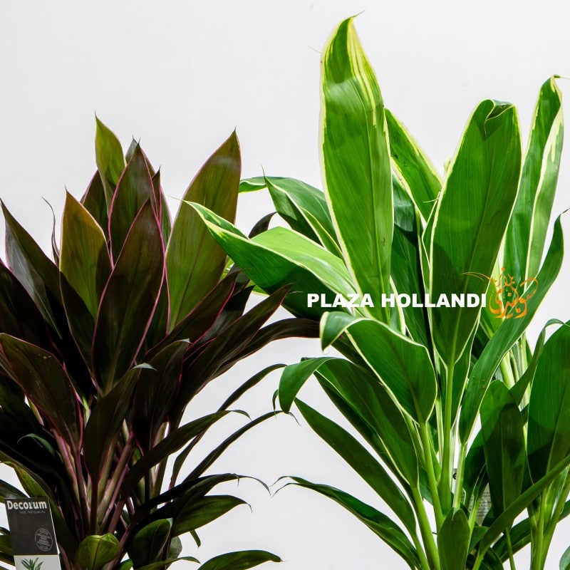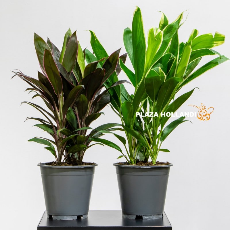 Two variegated cordyline plants.  One pink and one green.  These plants are fairly easy to look after as houseplants and will add colour and texture to your interior design.  Given a spot in bright, indirect light, with moist soil from a humid environment, this plant thrives indoors. Ideal for a bright bathroom to provide the preferred humidity, or place the pot on a tray filled with pebbles and keep them topped up with water.