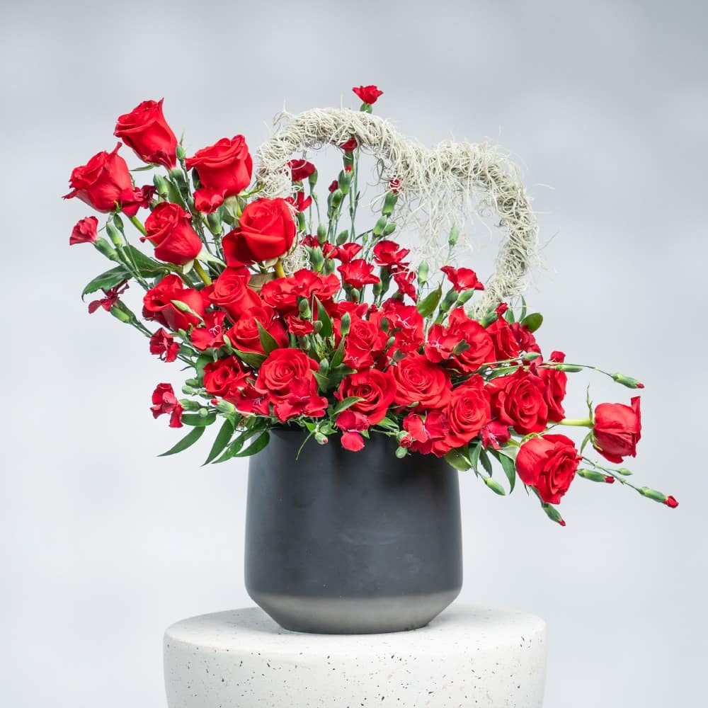 Velvet Red Heart: Roses & Air Plant in Black Pot (50 cm) is designed for those who appreciate modern luxury and emotional depth. To experience this arrangement or explore other signature creations, visit our locations and discover Plaza Hollandi UAE’s premium flower delivery service in Abu Dhabi.