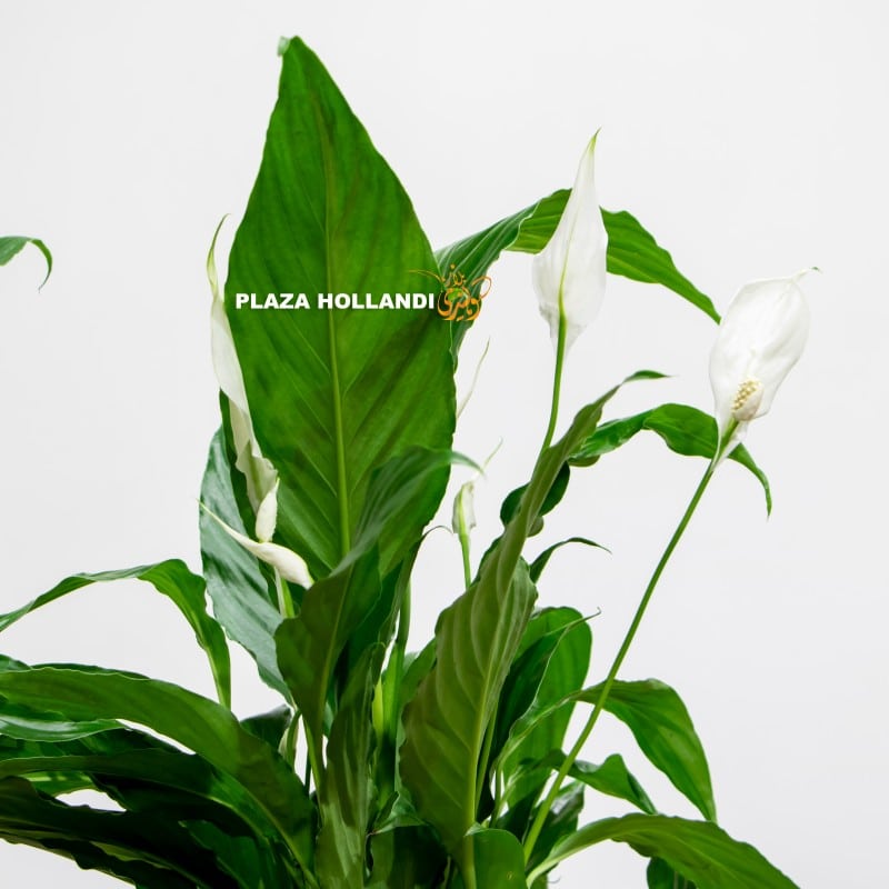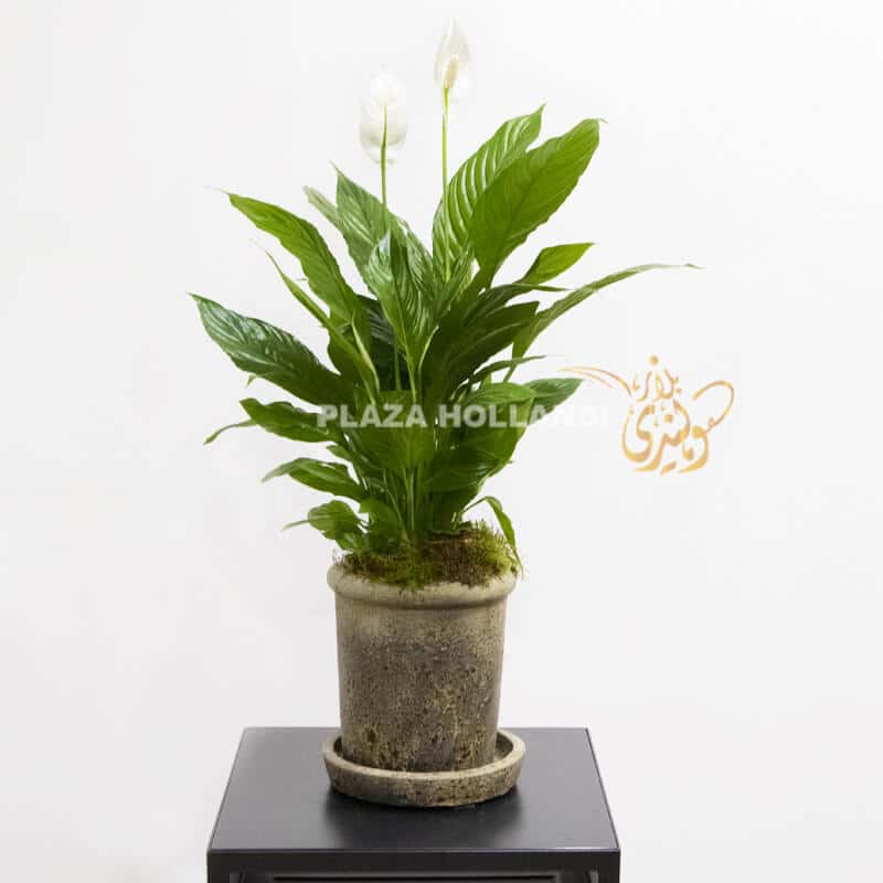 This beautiful white peace lily plant has been potted in a textured pot. This peace lily, also known as spathiphyllum is a wonderful plant to add to your indoor area. Suitable for low light and bright light these plants are easy to look after. They require water only when the leaves ‘droop’ a little. To ensure you continue to get white flowers fertilise once a month with Pokon Go available at our garden centre. Peace lilies are one of the best air purifying plants available. For more information about this take a look at our blog about the best air purifying plants available.